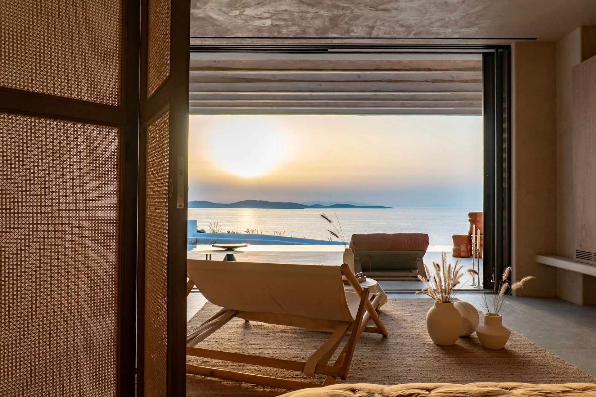 Bedroom 3: double bed, [A/C], sofa and and ensuite bathroom with open plan shower | access to the outdoor through balcony doors - sea view room