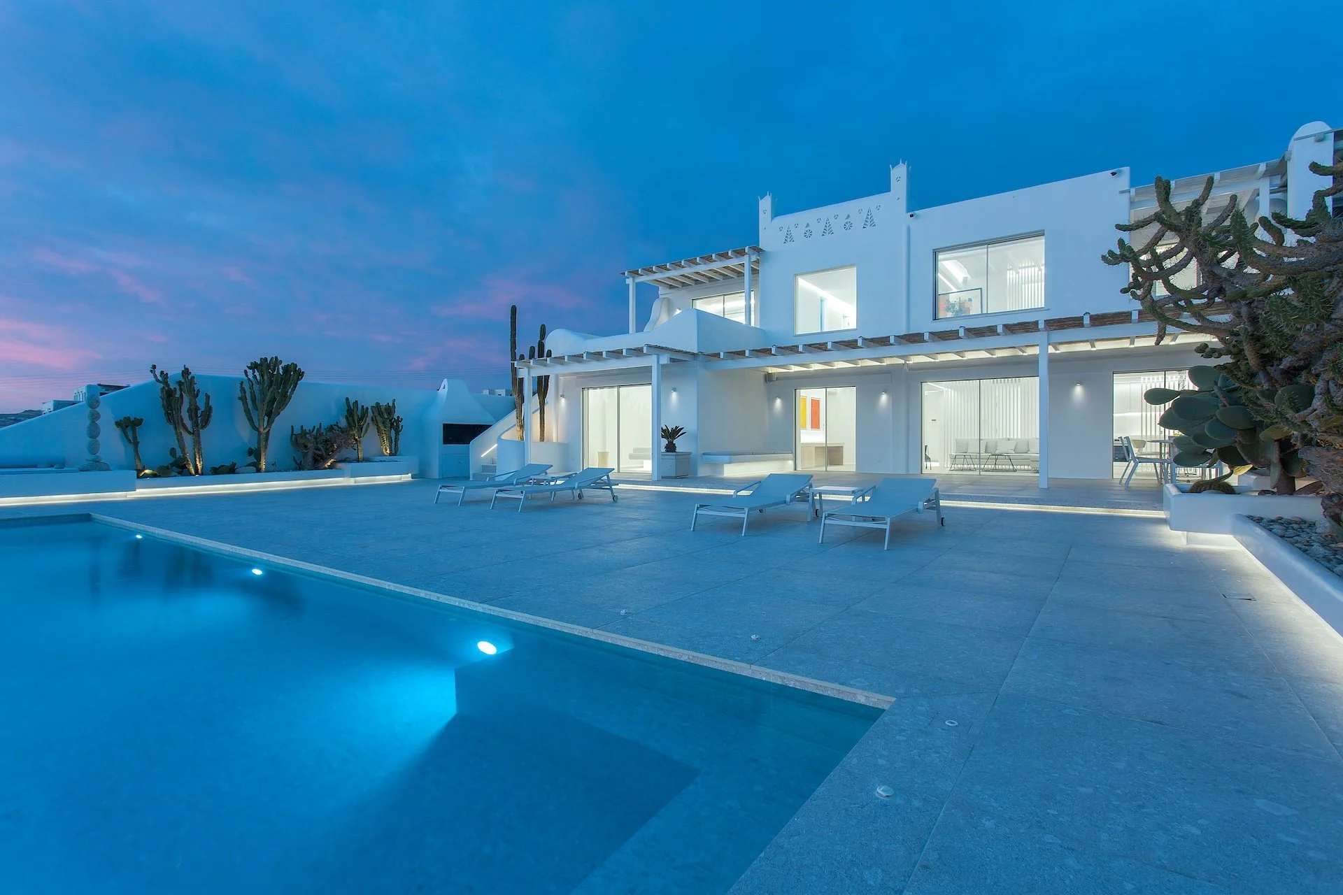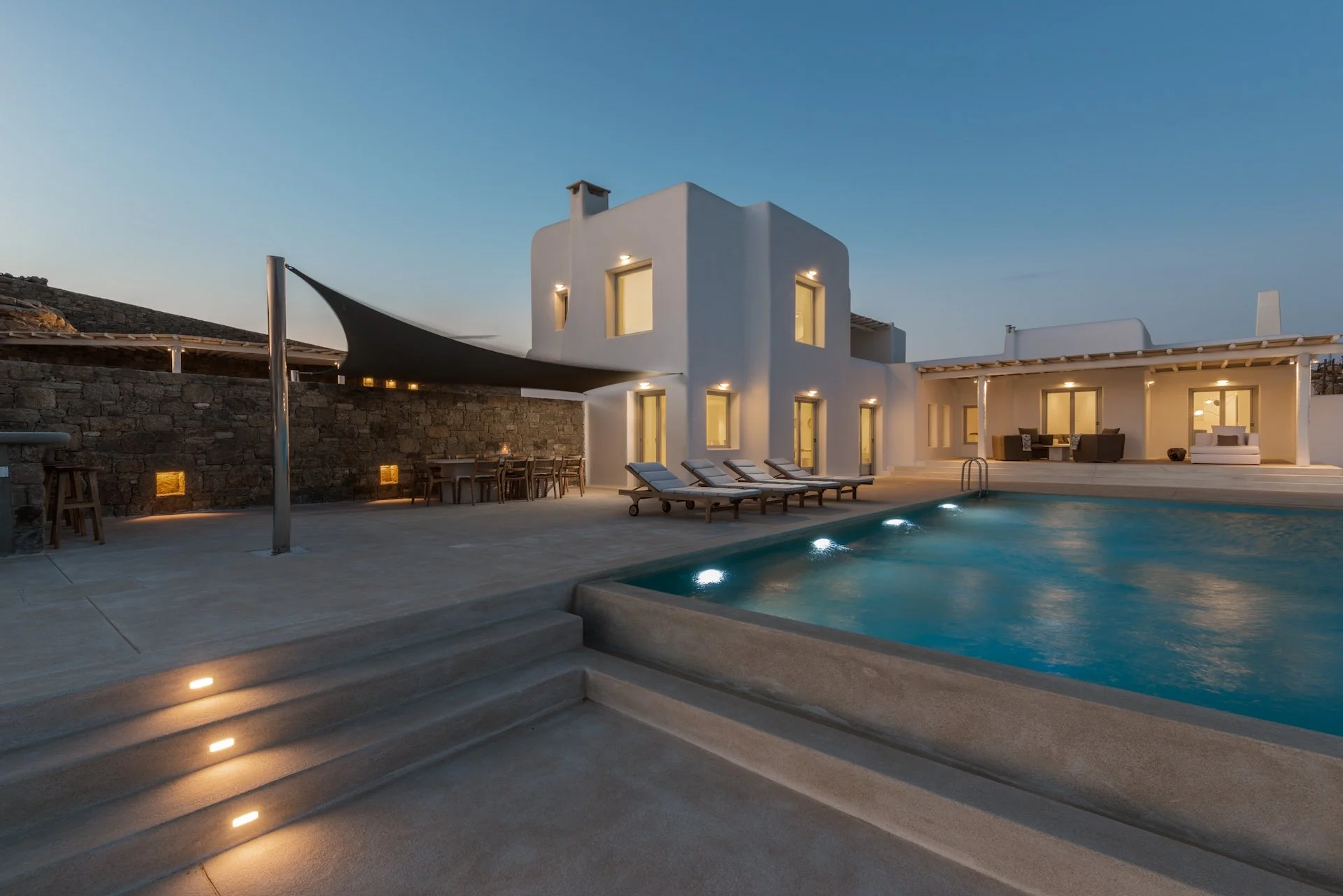 Entrance floor: private pool [100m2], loungers, build in sunbed, build in sofa under pergola